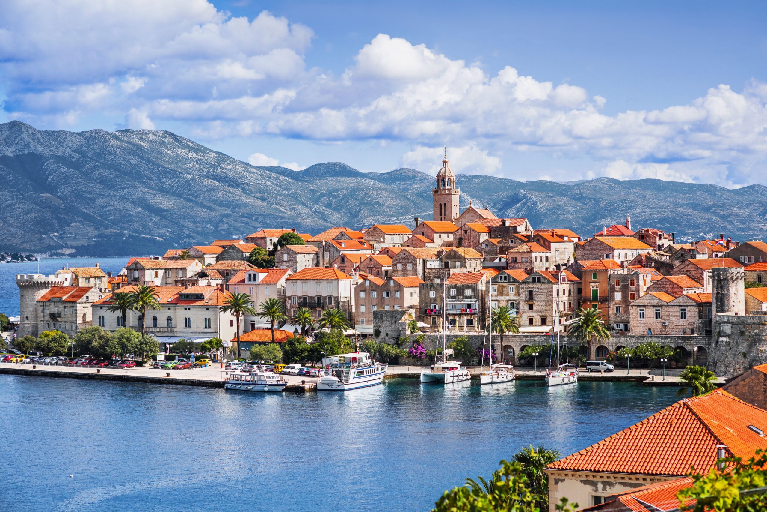 The impressive long promenade by the sea and palms, restaurants that offer delicious meals or wines for your palate. Korcula is well known as a wine-producing island famous for its homemade red ‘Plavac Mali’ wines; white Pošip,’ Rukatac & Grk.’